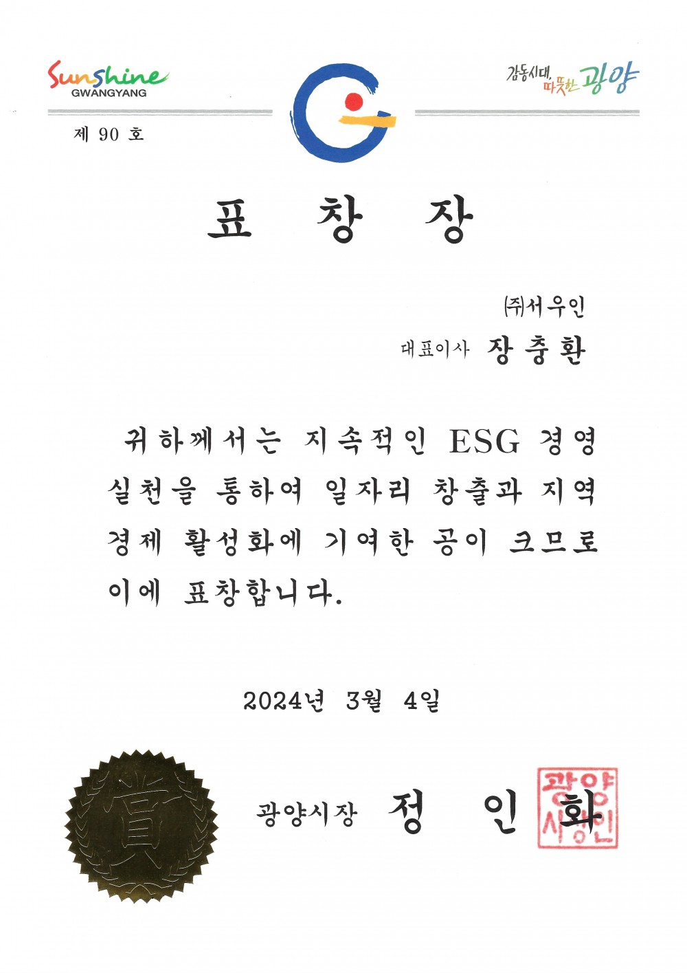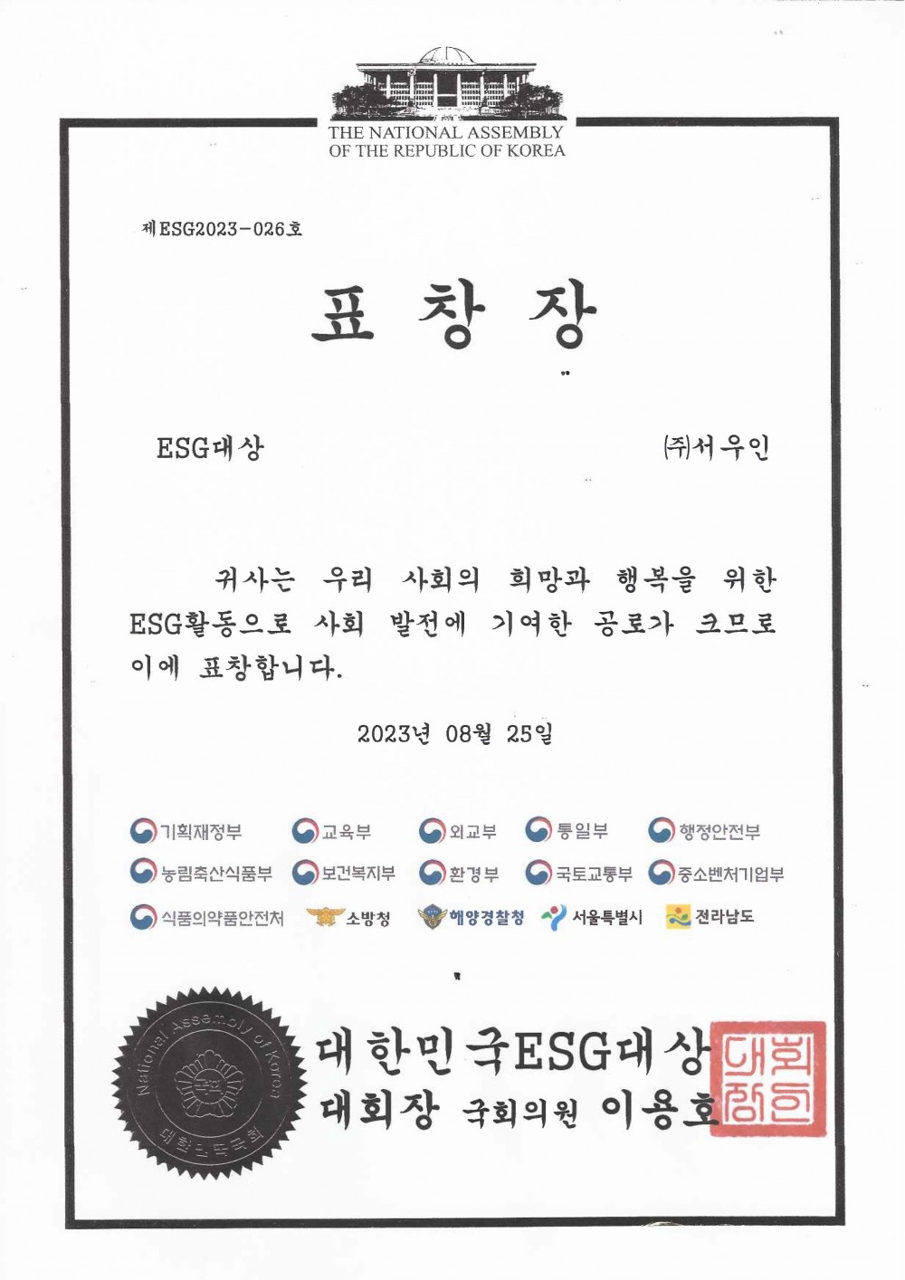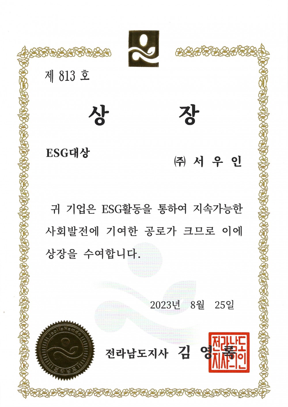 ESG经营奖状