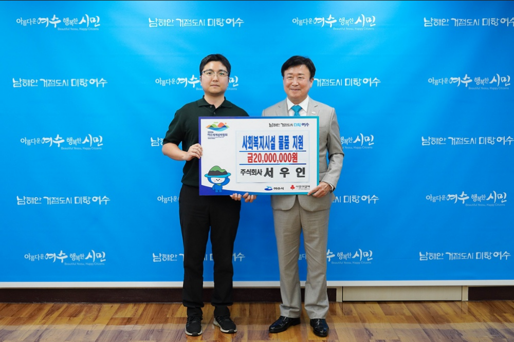 2025년 10월 20일, ㈜서우인(대표 장충환)은 여수시 사회복지시설의 위생적이고 쾌적한 환경 관리를 위해 2천만 원 상당의 기능성 물티슈 1...